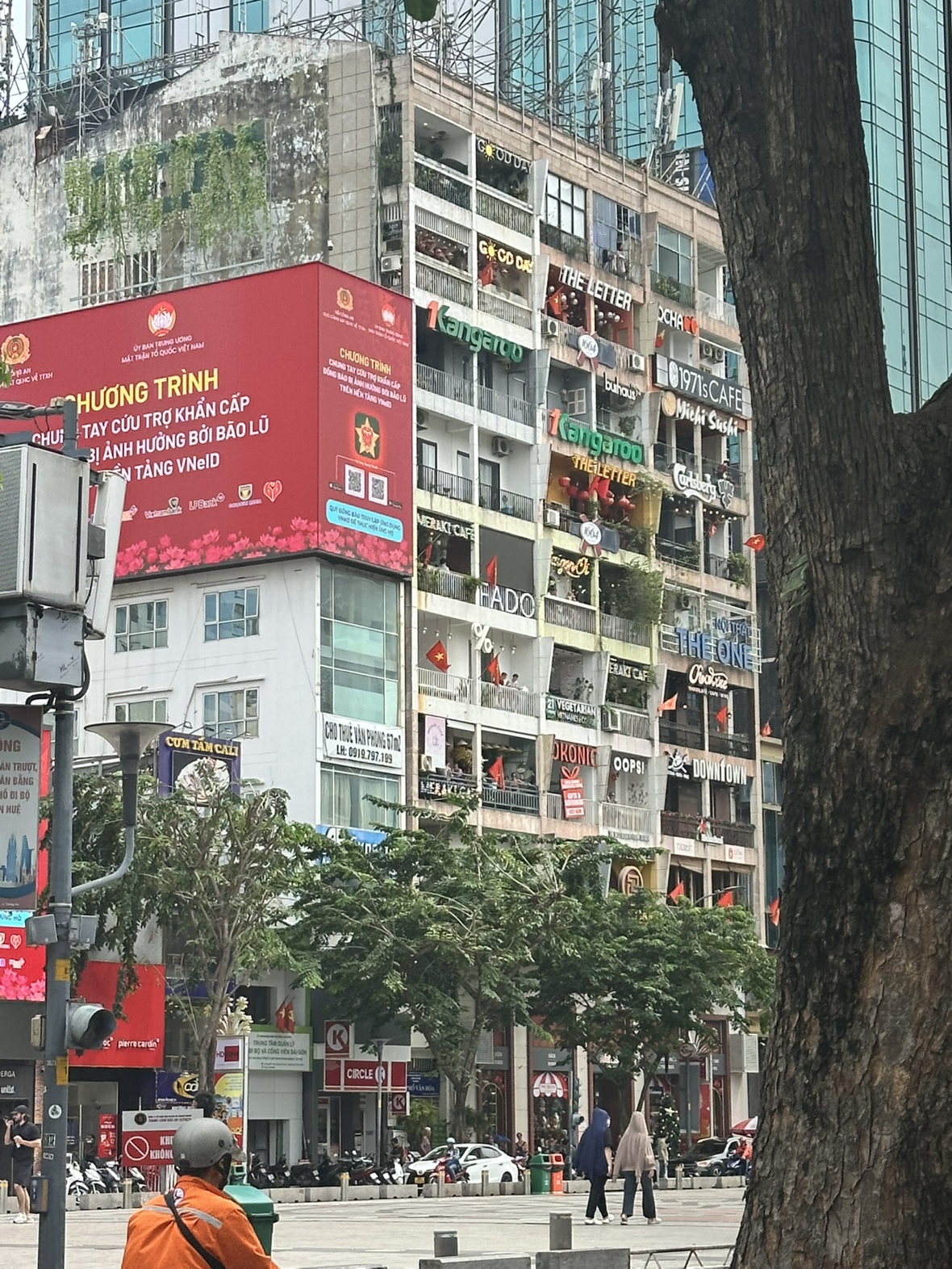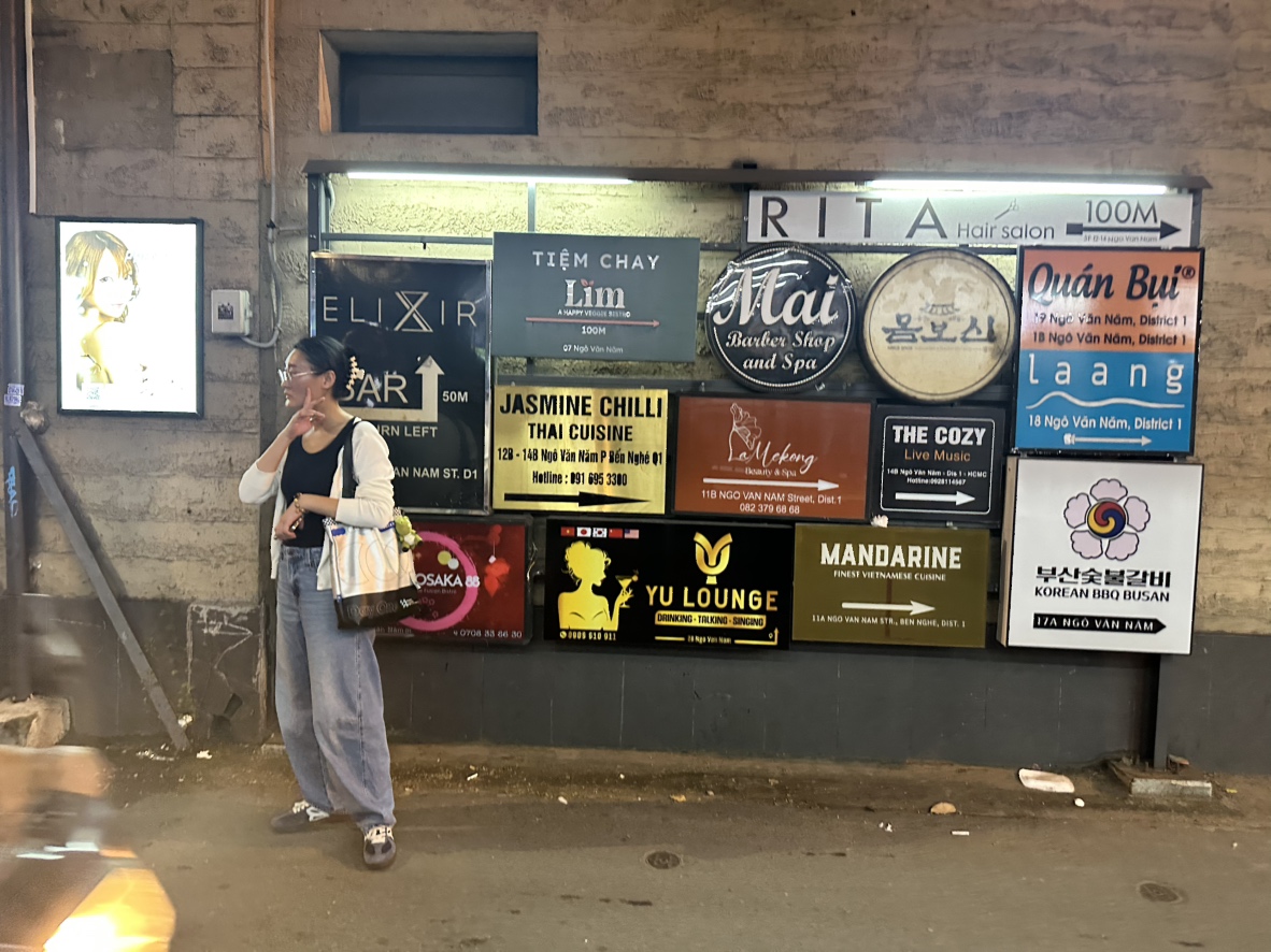 ベトナムならではの街並みを背景に、旅の思い出を写真に収めました。