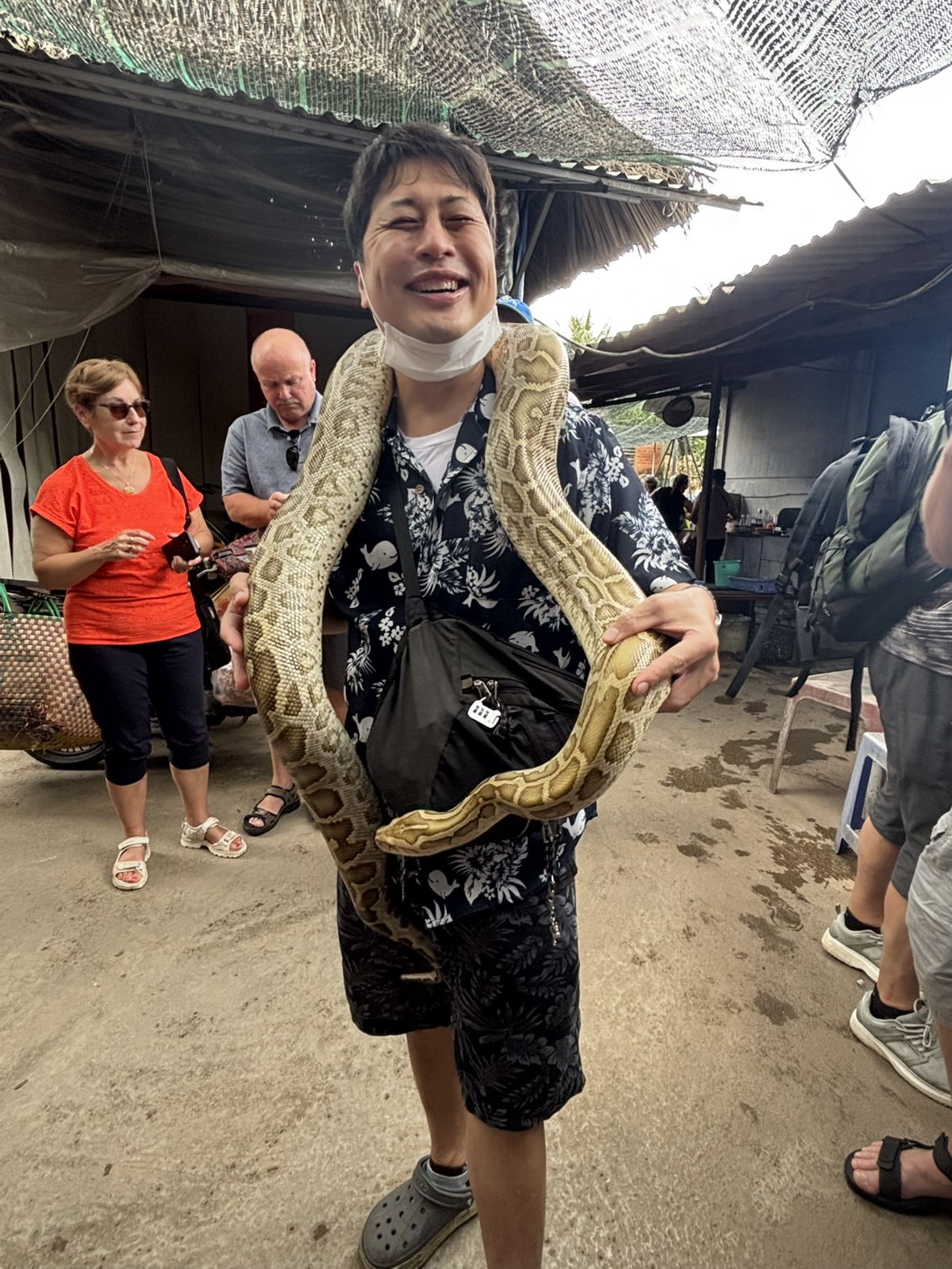 ツアーでは、ベトナムの郷土料理を楽しんだほか、馬車に乗ったり、ハチの巣のはちみつを味わったり、蛇を首に巻く体験に挑戦したメンバーも。
