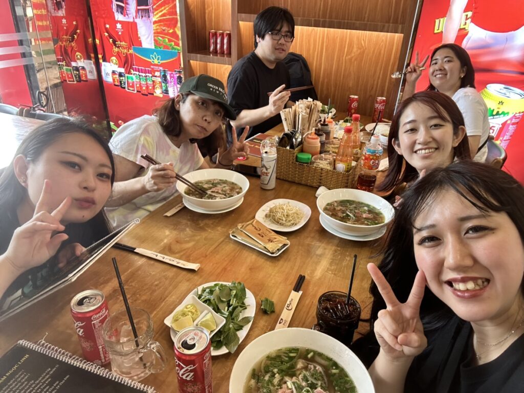 ベトナム料理を囲みながら、香辛料の香りや日本とは違う味付けを楽しみ、旅に来た実感がさらに高まります。