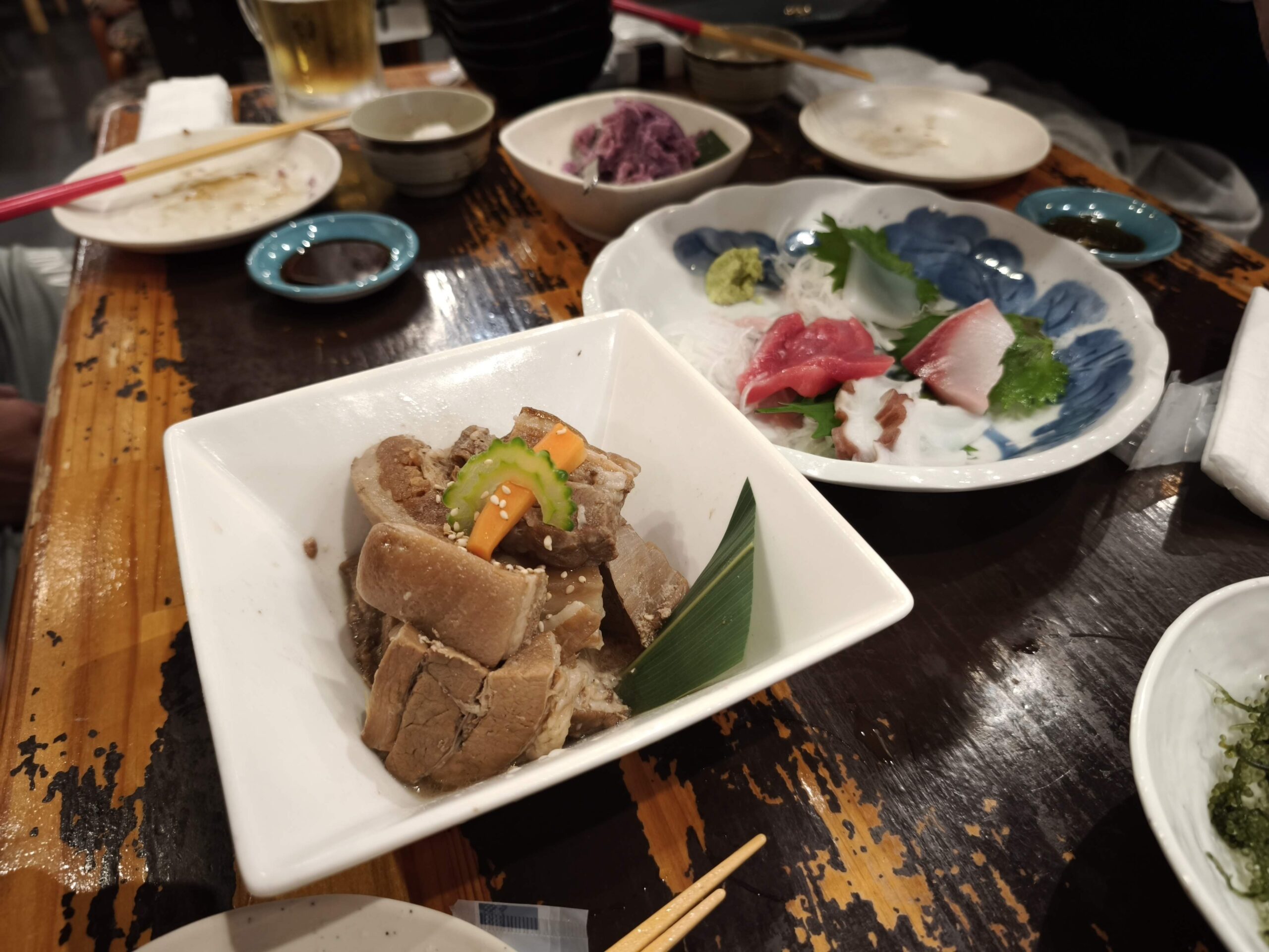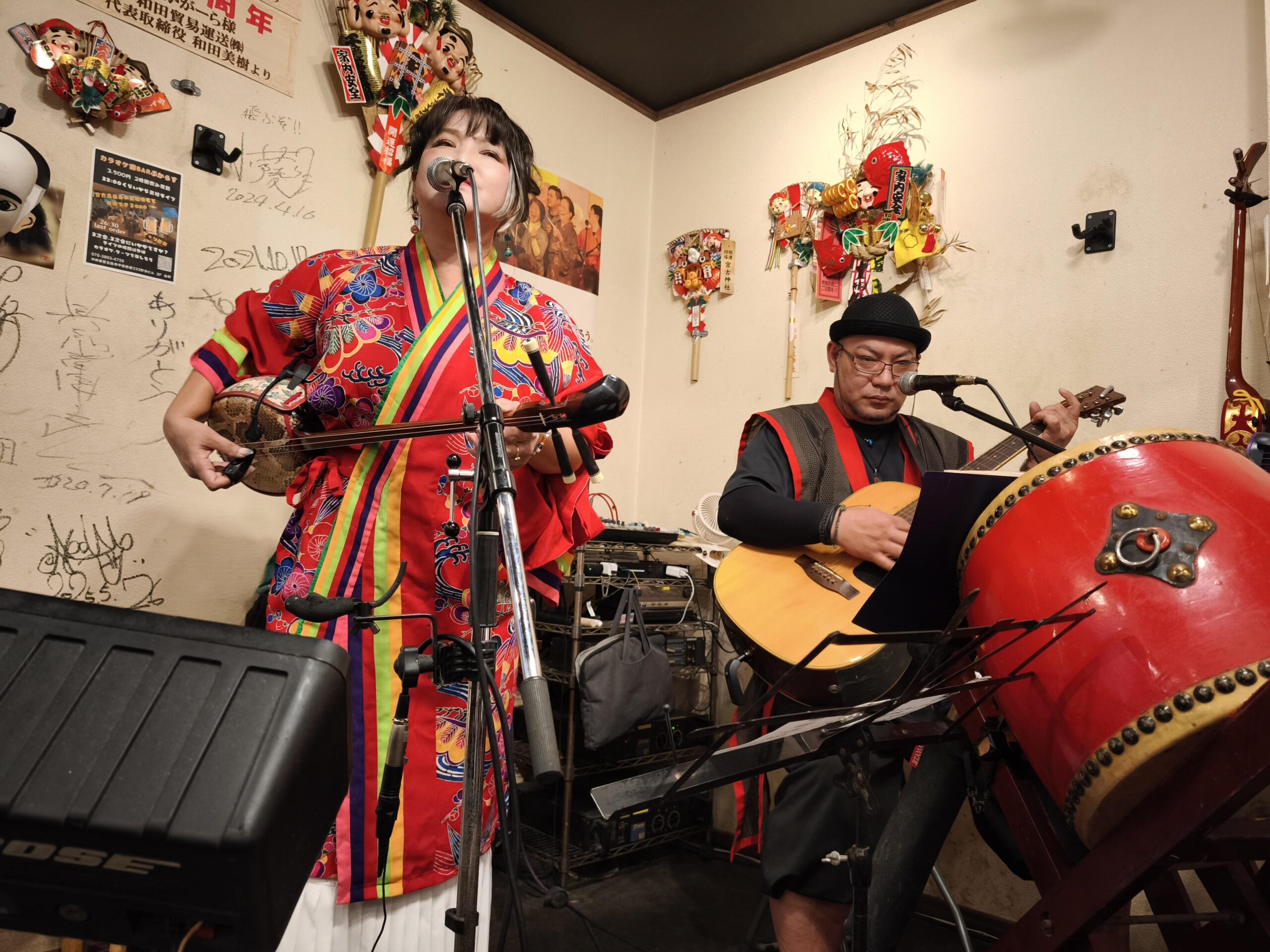初⽇の夜は「あかがーら宮古島店」へ。三線の⾳⾊と島唄に包まれ、⼀気に“沖縄スイッチ”が⼊ります。
