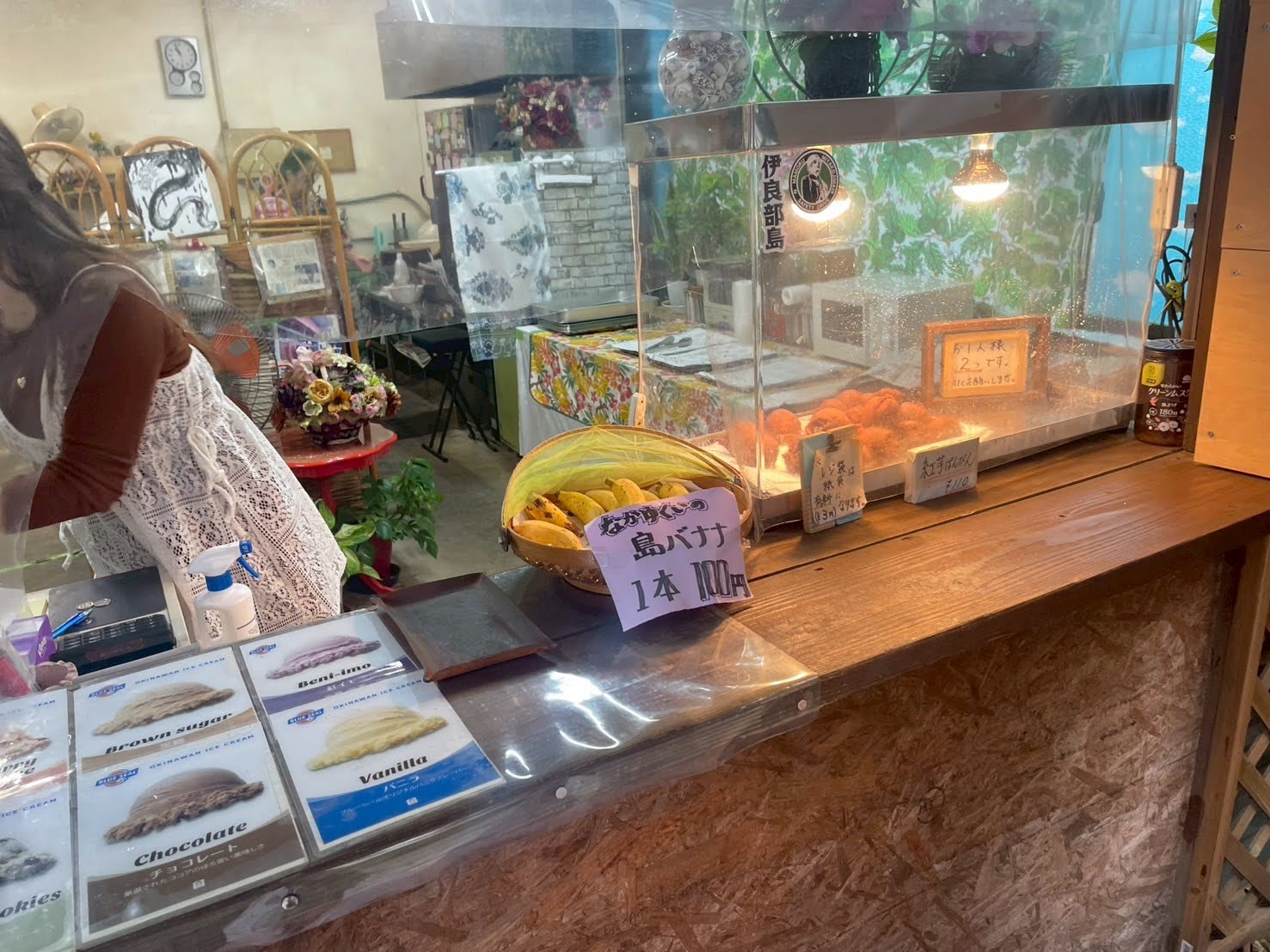 景⾊だけでなく、島の「味」もしっかり堪能するのが旅の醍醐味。事前に調べておいた紅芋のサーターアンダギー(ぱんびん)は、外せません。揚げたてサクサクの⽣地を割ると、中から現れるのは驚くほど鮮やかな紫⾊。その素朴で優しい⽢さに、移動中の⾞内も⾃然と笑顔に包まれます。