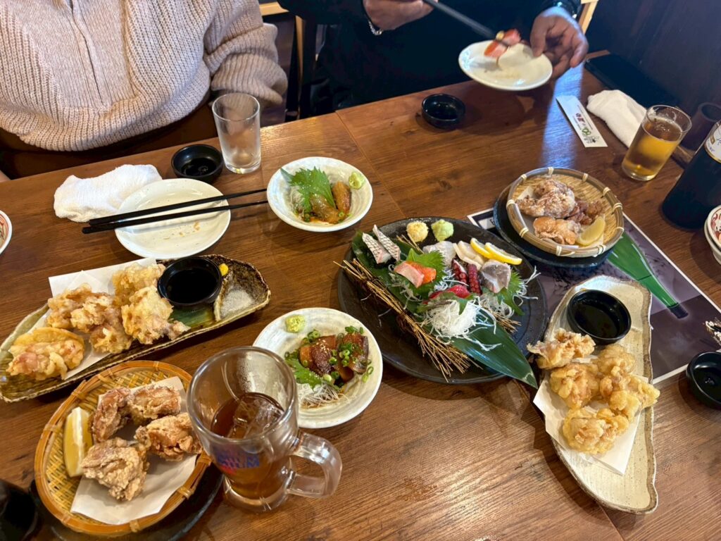 見つけた居酒屋さんでとり天やりゅうきゅうを頂きました。(夜まで我慢しようと思ってたのにお酒も飲んじゃいました。とってもおいしかったです。)