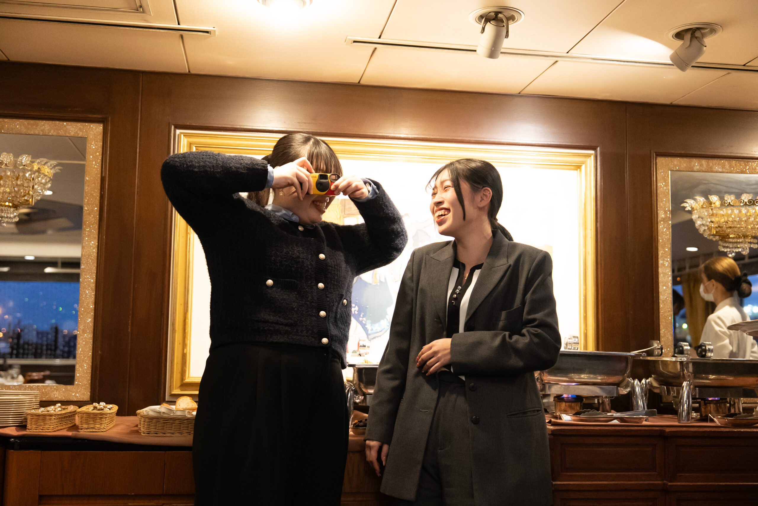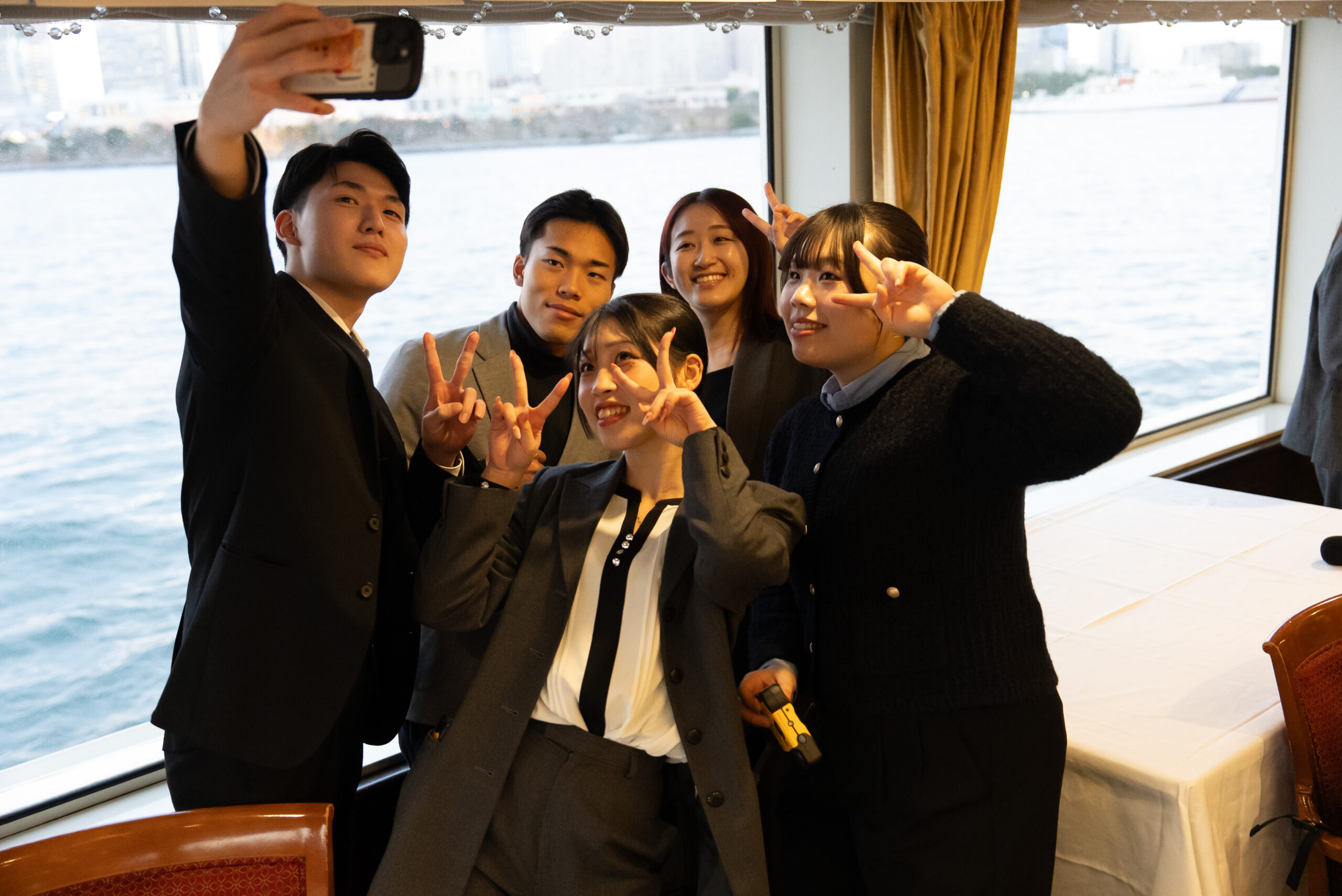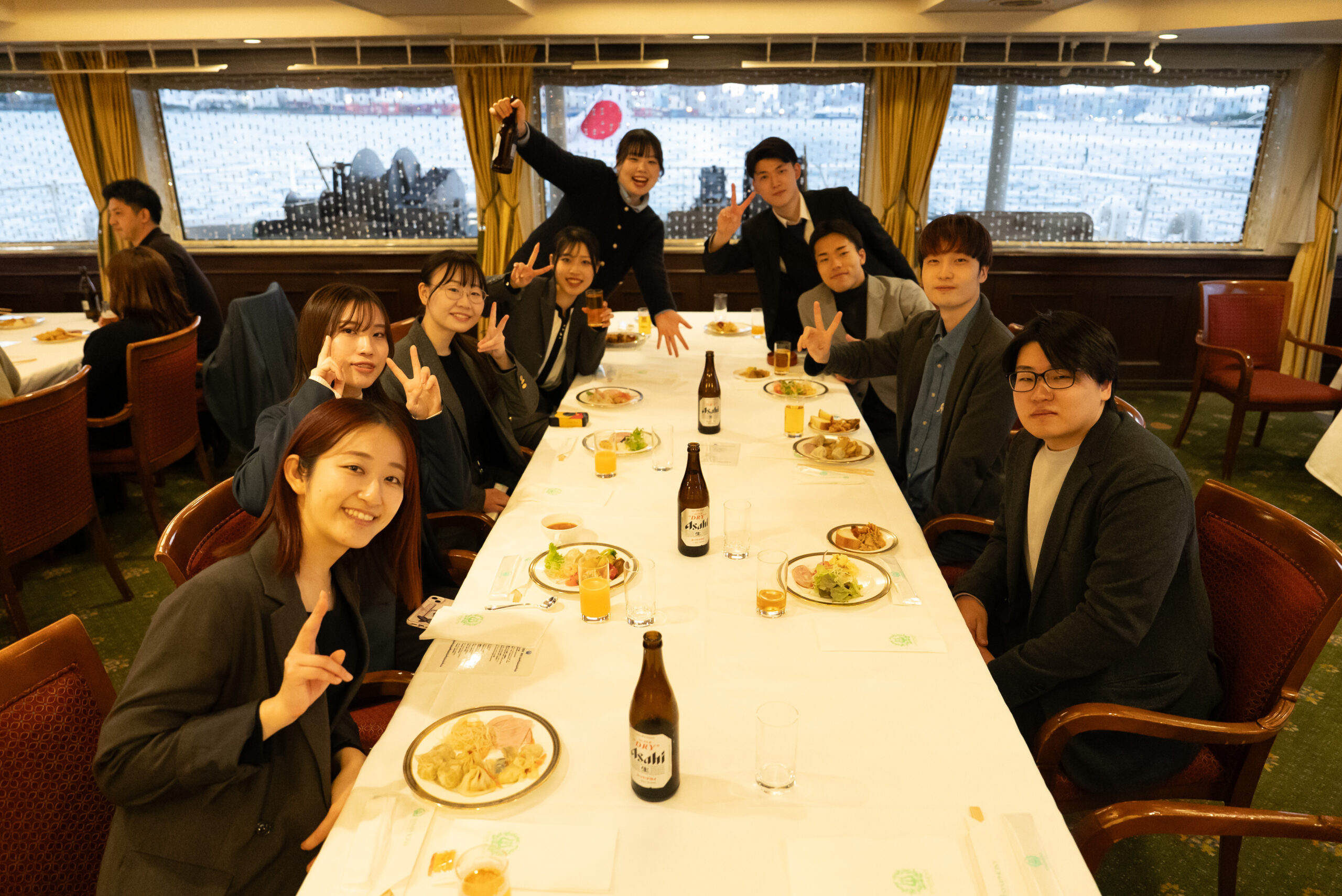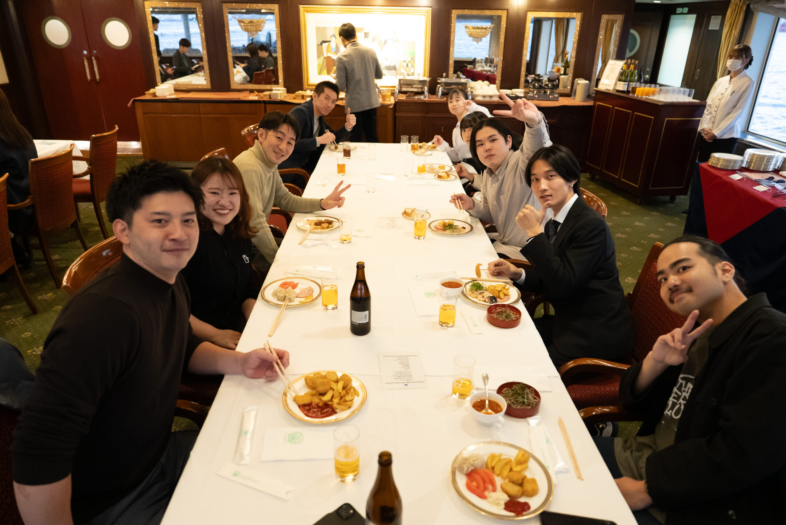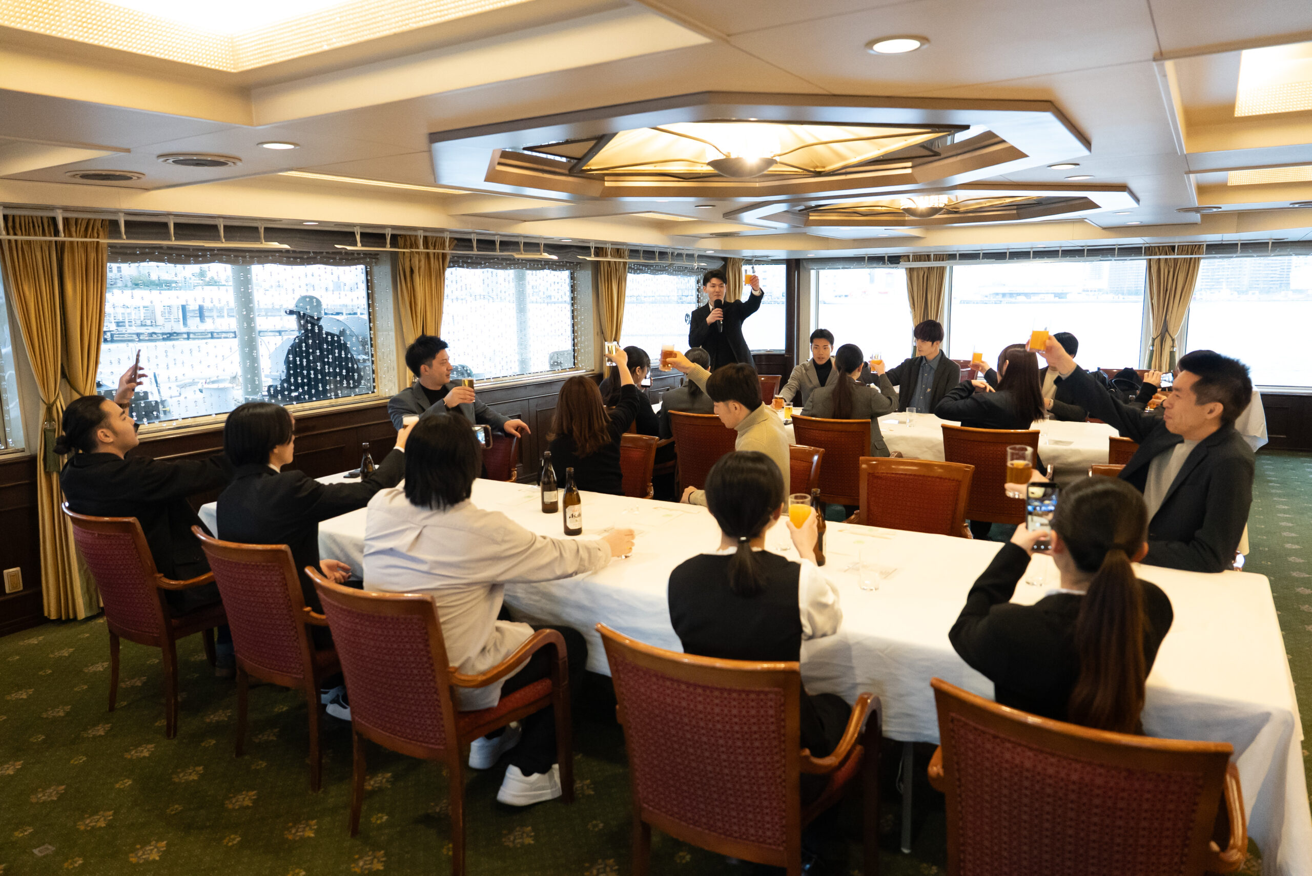 ビュッフェを楽しみながら談笑したり、東京湾の景色を背景に写真を撮ったりと、船内ではそれぞれが思い思いのひとときを過ごしました。